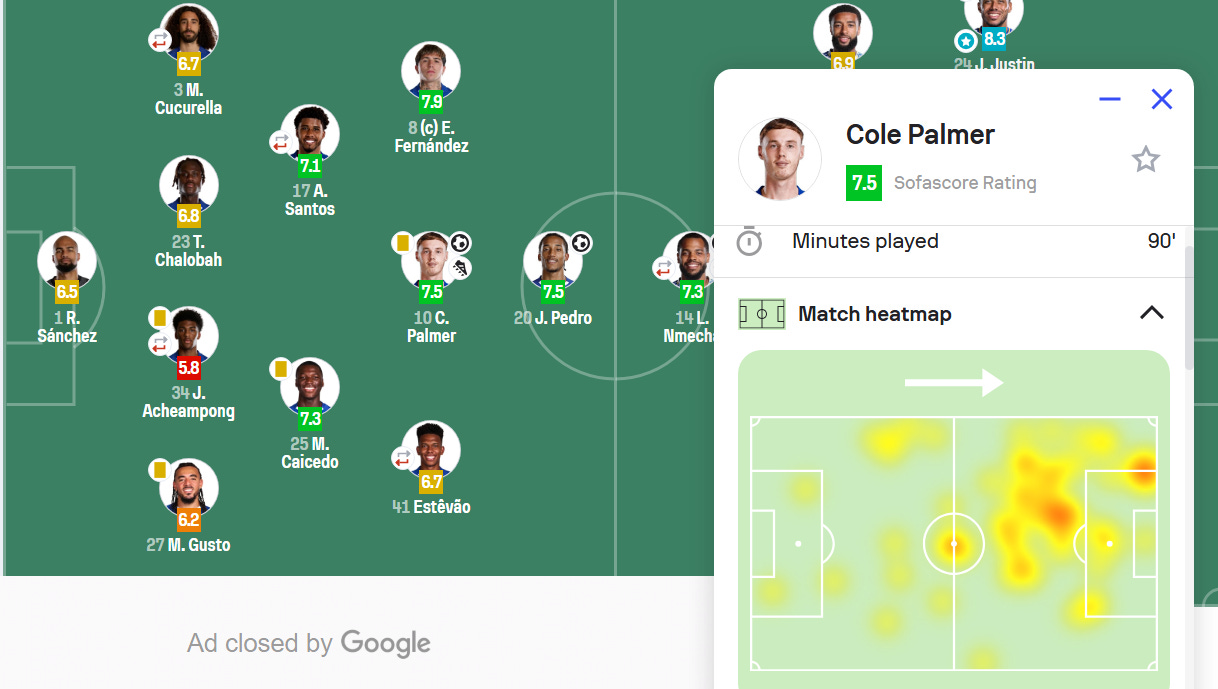 Cole Palmer was gifted pure freedom, which is what he has been craving. I mean, you saw Palmer everywhere last night, even dropping right in to get it short off Robert Sanchez. If you want the best out of Palmer, this is what you need to afford him, the freedom to roam. Estevao was doing a lot of the same too. And we were ticking and purring in that first half.